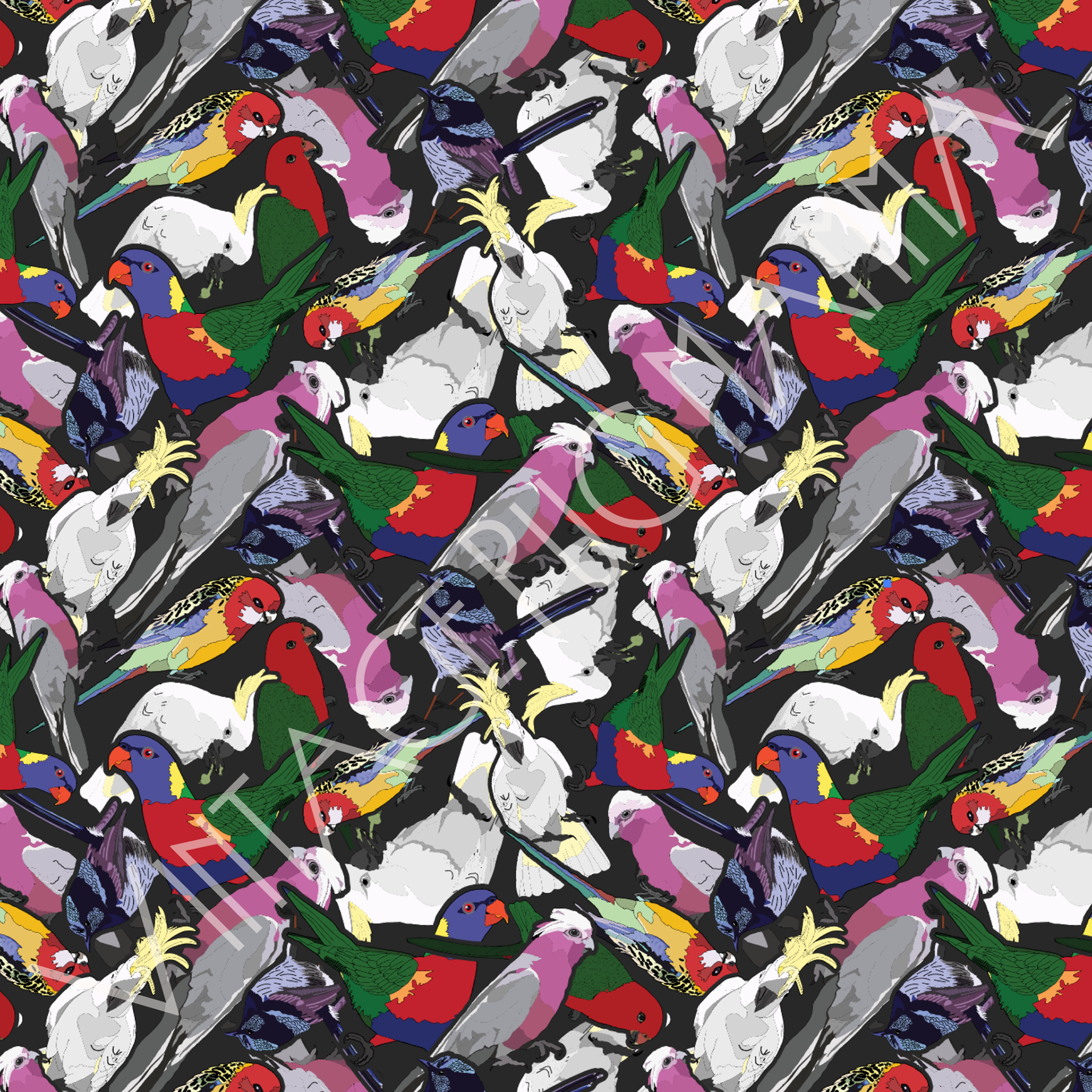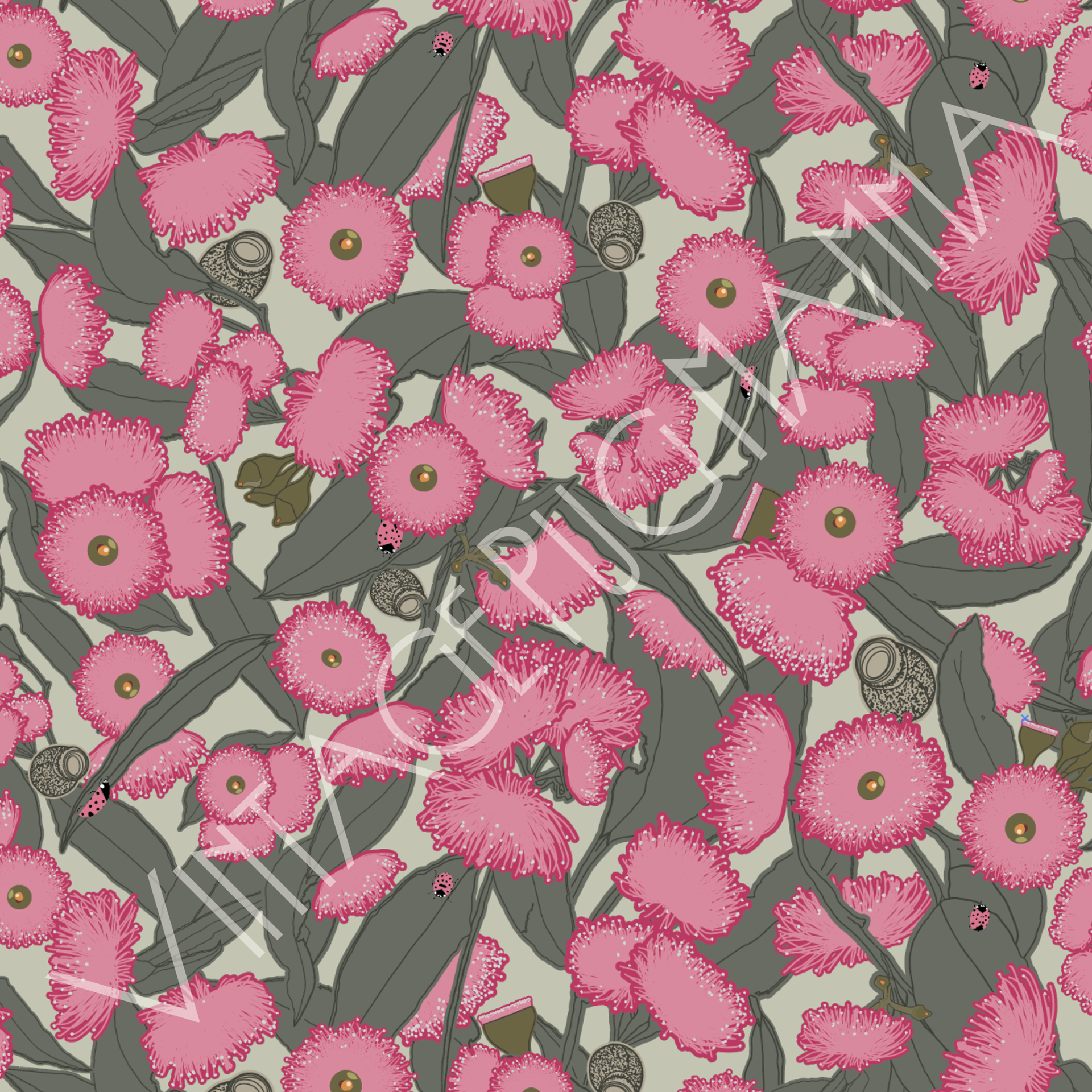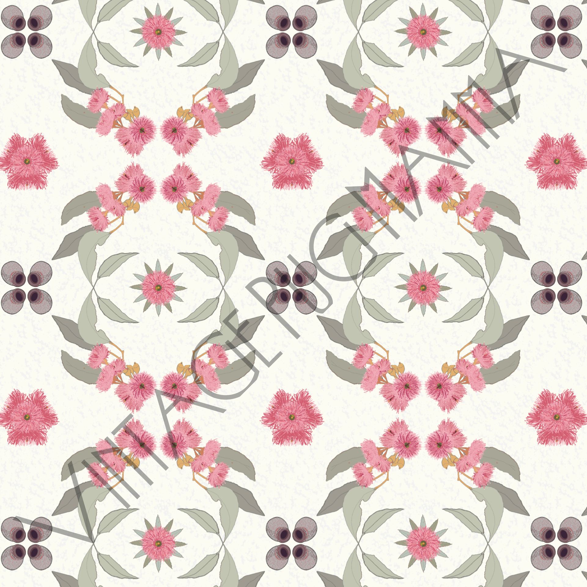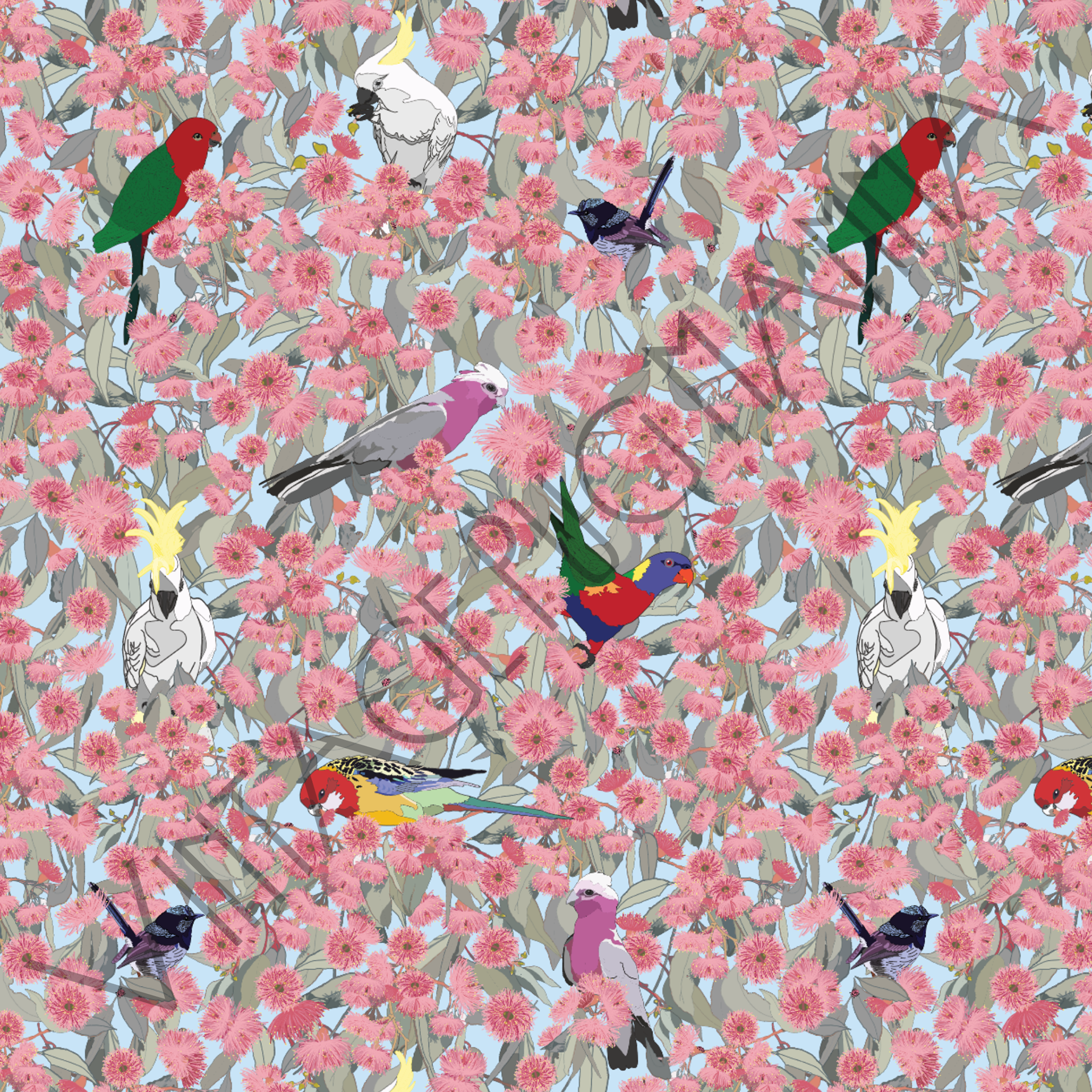 Birds of a Flamin' Feather Collection “Birds of a Flamin’ Feather” is a sassy, nature-infused celebration of Australia’s most flamboyant feathered personalities. Set among bold gum blossoms, the collection features two colour ways — Bloomin’ Blushed Bush and Ghost Gum Glam — capturing the cheek, charm, and contrast of the bushland in full bloom. Bloomin' Blushed Bush colour way - A flirty flush of gum blossoms in every pink shade nature (and attitude) can muster. This colourway is all bold blooms, blushing petals, and a whole lotta bushland sass.